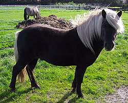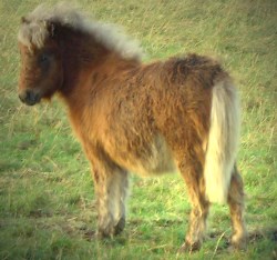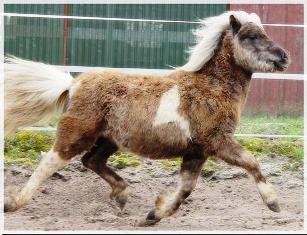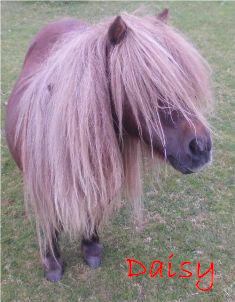 | Mini-Shetlandstute: Daisy - Dunkelfuchs - *29.04.1989 Vater: Davy v. St. Bloemmendaal, Fuchs Mutter: Daisie, Fuchs Daisy wurde als Fohlen prämiert !!! Daisy ist 75 cm groß, die längsten Mähnenhaare sind 73 cm lang!!! Daisy hatte bislang 4 Fohlen (3Stutfohlen -alle prämiert und 1 Hengstfohlen) !! Daisy wurde gedeckt vom Palominohengst Starlight !!! |