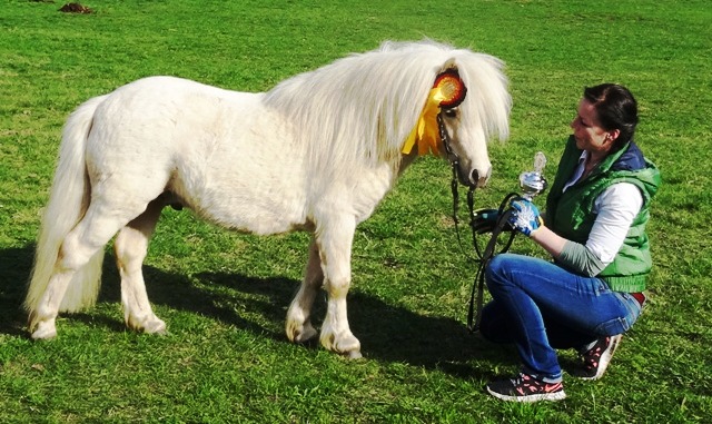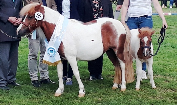 Silbersee´s Ella geb. 08.06.01 / Falbschecke Ella wurde als Fohlen prämiert und wurde Siegerstute der 3. u. 4. jährigen Shetlandponys in VECHTA auf der Verbandsschau ausgezeichnet.
