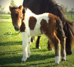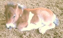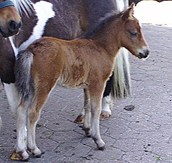 Einz"Außergewöhnliche Fellfarbe" "OLIVIA" 15.06.06 - Windfarbe "Braun" mit weißem Behang - wird ca. 100 cm V.: Luxus -Dunkelfuchs mit weißem Behang- 99 cm M.: Odelia L.H. -Braun- 100 cm Olivia wurde als Fohlen prämiert.