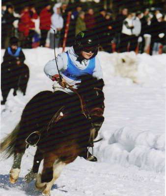 hier ein Bild von Julchen für Ihre Enkelin beim Internationalen Pferdeschlittenrennen in Reit im Winkl das Sie souverän Gewann !