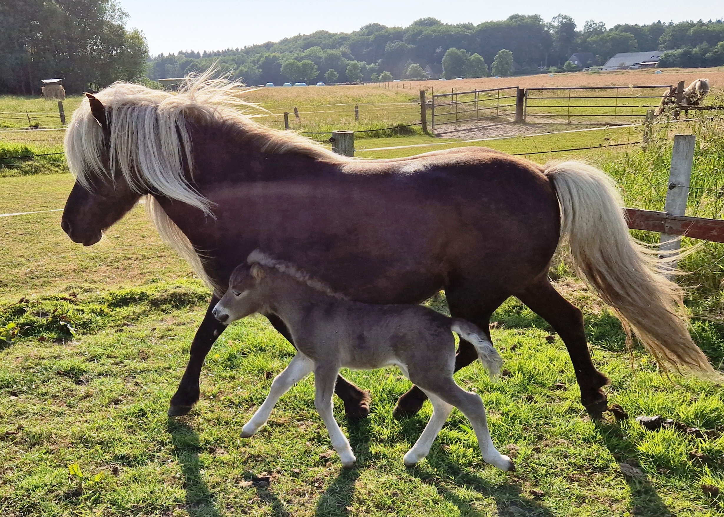 Silbersee's Ucada aus der Silbersee's Una -Braun- -Fuchs-Schecke- Vater: Kismet v.d. Sleutelhof -Dunkelfuchs-Schecke- Geboren am 28.05.2023 |