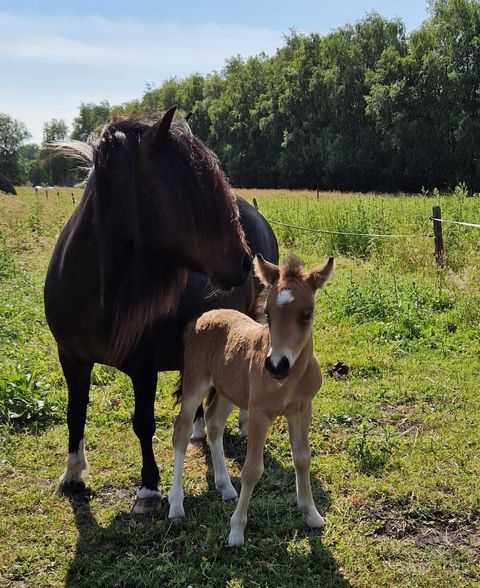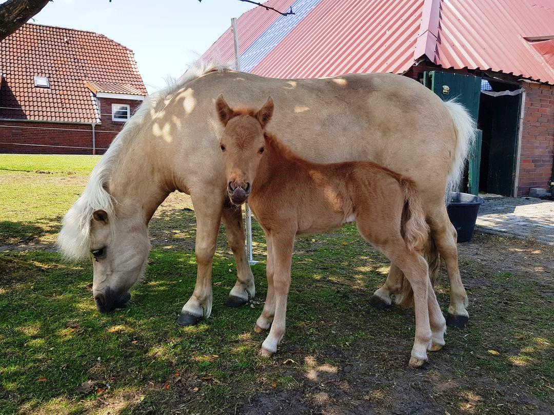 Silbersee's Easy aus der Silbersee's Ewa -Fuchsisabell (Palomino)- -Fuchs- Vater: Kismet v.d. Sleutelhof -Dunkelfuchs-Schecke- Geboren am 16.06.2023 Fohlenprämie mit der Note 7,5!!!