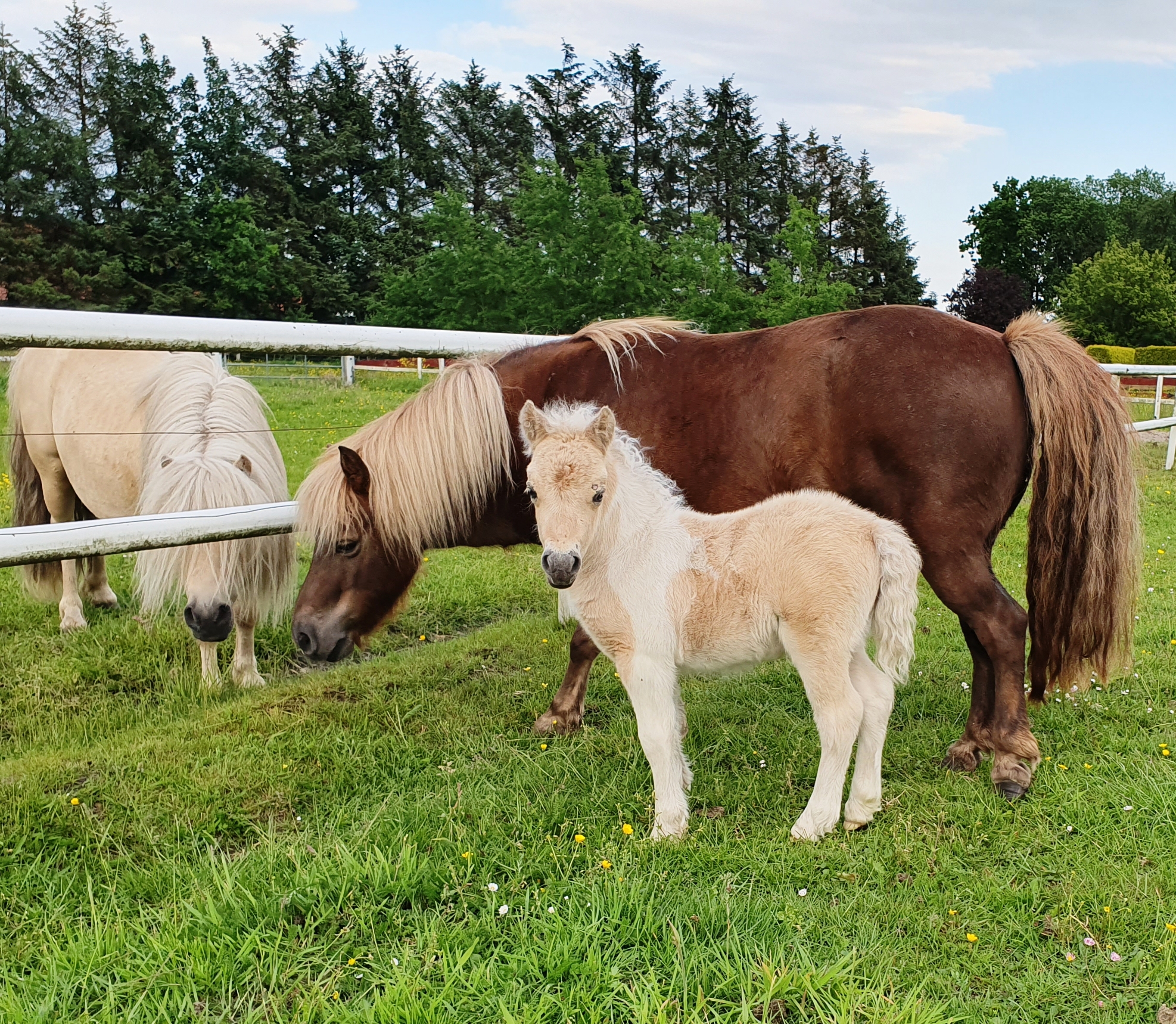 Verkauft nach Frankreich Original-Shetlandstute mit Stutfohlen bei Fuß :Nargon und Neela Neela ist am 20.04.2012 geboren. -Rappschecke- - Palomino- *24.04.98 - wird ca. 93 cm Vater: Barflat 20 TH Century Boy, Palomino Mutter: Bianca v.d. Molen, Fuchs