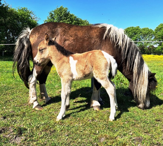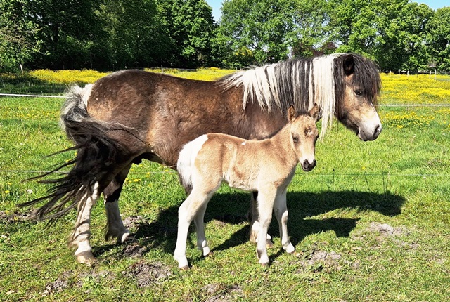 *14.05.2025 -wird ca. 100cm Vater: Kismet v.d. Sleutelhof (Dunkelfuchs-Schecke) Mutter: Silbersee´s Wenke (Perlino) Fohlenprämie mit der Note 8,2!!! Preis:VB |