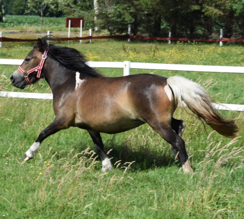 - Falbschecke - *01.06.07 - wird ca. 103 cm Vater: Luxus (Dunkelfuchs m.w. Behang) Mutter: Silbersee´s Ella (Falbschecke) Silbersee´s Ludger wurde als Fohlen prämiert (Reservesieger Fohlenchampionat 2007). Er wird nur als Hengstanwärter verkauft, eventuell mit Vertrag. Preis: VB |