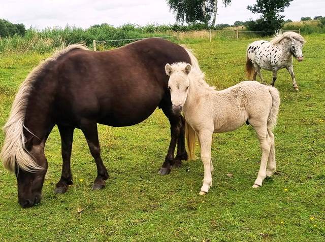 *04.07.2013 -97 cm Vater: Key Royal (Braunschecke) Mutter: Meerhusen's Hexina (Palomino) -Verbandprämienstute Fohlenprämie