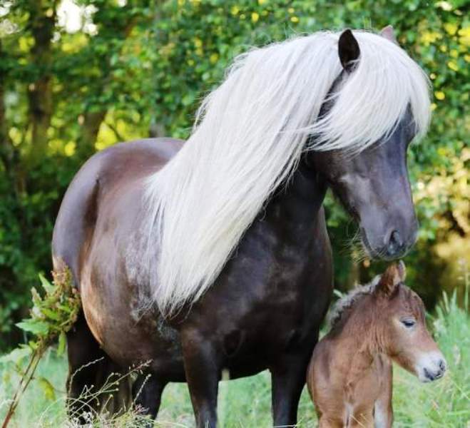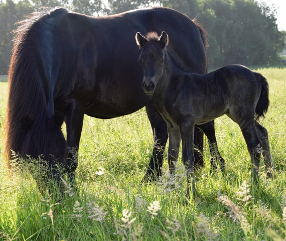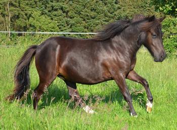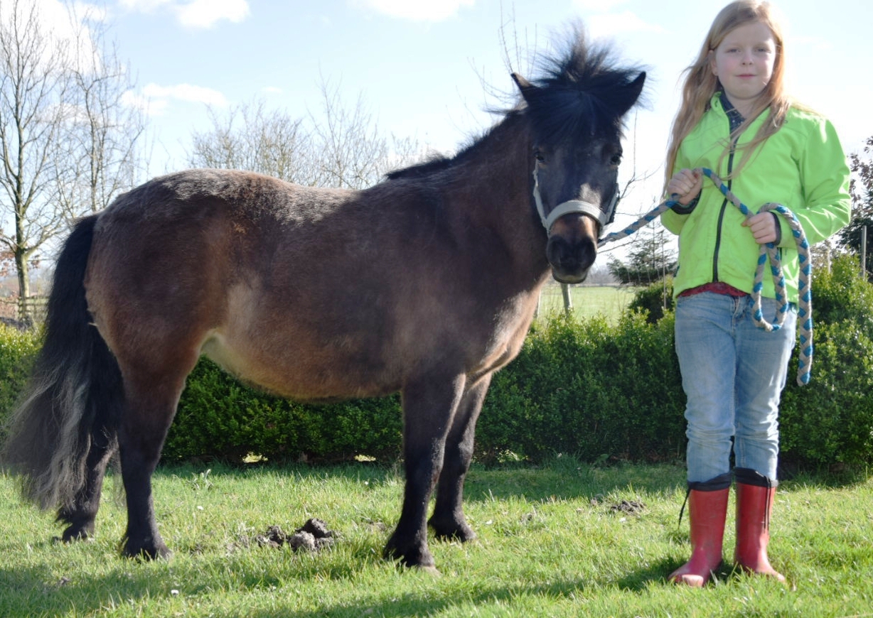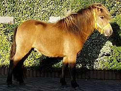 Macho v.d. Veldhoeve (Rappe) Dorell wurde als Fohlen prämiert und läßt sich sehr gut reiten. Auch von Kleinkinder. Preis: VB |
