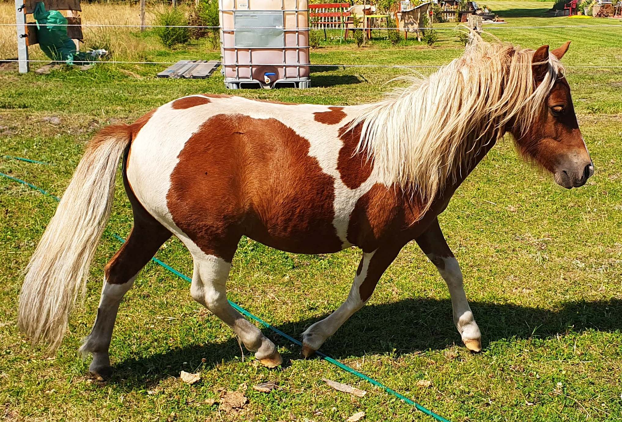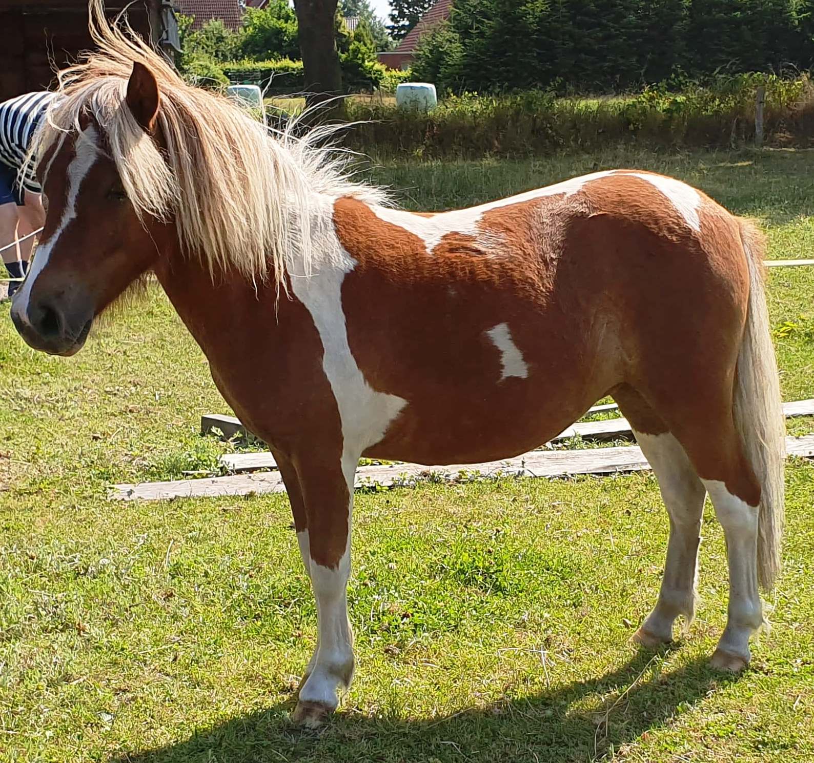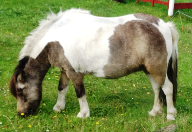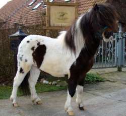 (Hier in Action in Reit im Winkl!) - Braunschecke - *30.04.1993 - 103 cm Vater: Berni (Fuchsschecke) Mutter: Johanna (Schimmelschecke) Julchen wird täglich von Kindern geritten und ist sehr umgänglich. Gedeckt von Luxus, zur Zeit Hengstfohlen bei Fuß. Preis: VB |