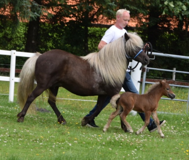 Luxus (Dunkelfuchs m.h. Behang) Silbersee´s Etta wurde als Fohlen prämiert und ist ein Spitzenshetlandpony für die Zucht und für die Schau. Ihre Mutter war die Gesamtsiegerstute der Shetlandponys in WESER-EMS. Preis: VB |