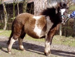 Carola vom Silbersee 03.06.04 - Schwarzbraunschecke - wird ca. 100 cm V.: Patron (Rappschecke) M.:.Carazza vom Silbersee