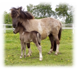 *10.06.2007 - 100 cm Vater: LUXUS (Windfarben) 98 cm Mutter: MAMBA (Rappe) 100 cm Stute wird im Auftrag eines Züchterkollegen verkauft! Preis: VB |